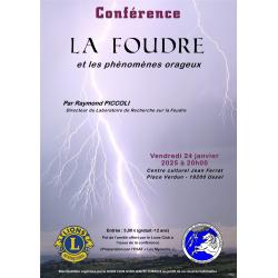Vendredi 24 janvier à 20 H la salle Jean Ferrat à Ussel Soyez des nôtre pour participer à la conférence animée par Raymond Piccoli, directeur du laboratoire de recherche sur la foudre