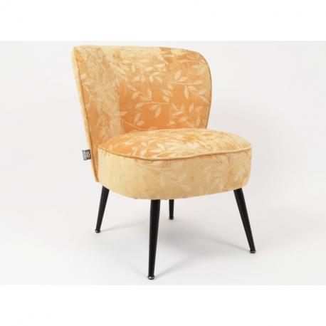 Fauteuil Priscille jaune or 59 x 66 x h 75 cm-assise h43 cm velours polyester et pieds en bois de couleur noir.