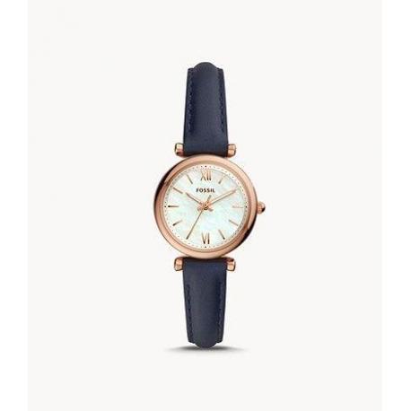 Montre Femme Carlie Rosée et Cuir Bleu FOSSIL