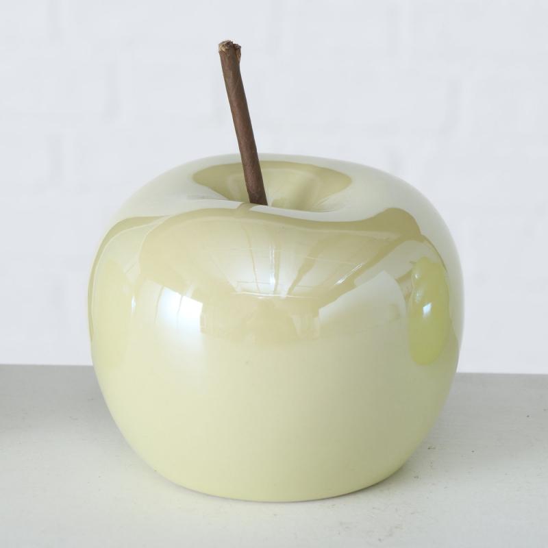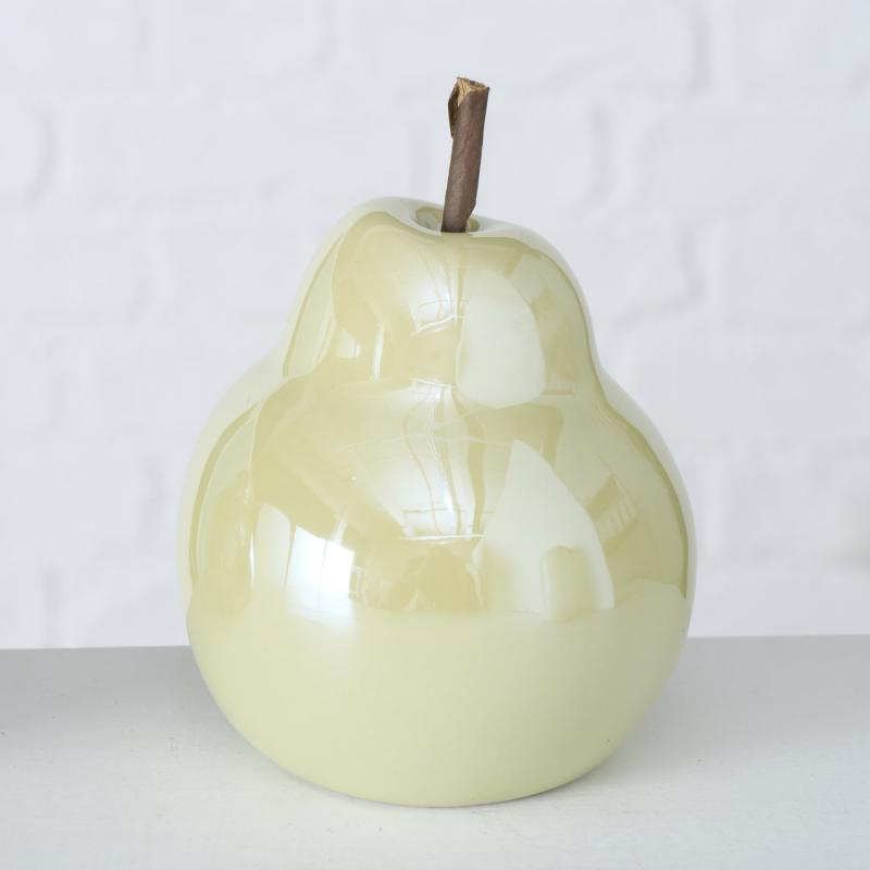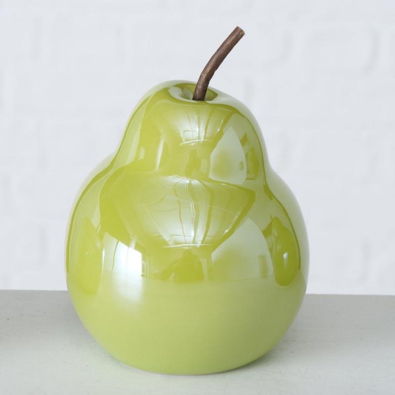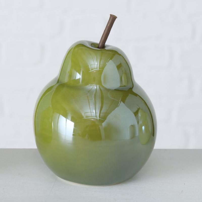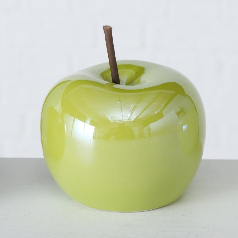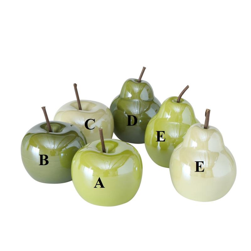 Les sculptures de pomme et de poire elles sont en céramique au couleurs lumineuse en dégradé de vert. Elles sont fabriquées dans un design minimaliste et moderne.