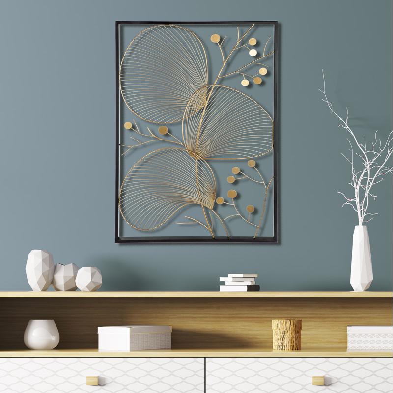 Apportez une touche d'élégance à votre intérieur avec cette œuvre murale Meti, un alignement parfait de feuilles en métal et soigneusement encadrées.
