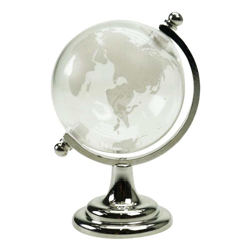 Ravissant mini globe terrestre en verre de cristal sur sa base alu design.