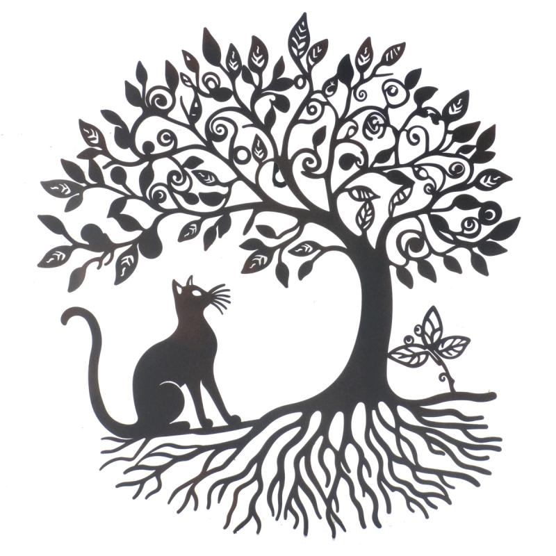 Ornement mural d'arbre avec figurine décorative en métal de chat