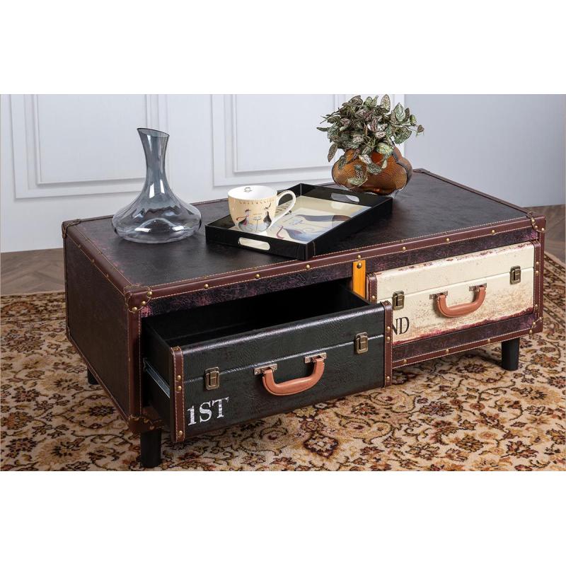 able basse MARCO au design valise vintage en similicuir, alliant charme rétro et fonctionnalité moderne. Parfaite pour compléter un salon au style authentique, elle s’harmonise facilement avec les autres meubles de la collection MARCO pour un intérieur cohérent.