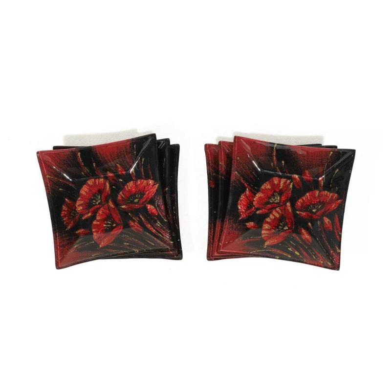 Découvrez les coupelles carrées, où le rouge flamboyant des coquelicots contraste magnifiquement avec le fond noir élégant. Chaque pièce, décorée à la main, incarne l'énergie et la beauté de cette fleur, apportant une touche de dynamisme à tout intérieur.