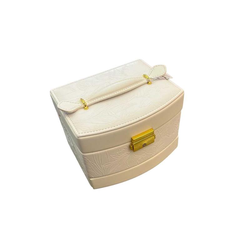 Cette boîte à bijoux blanche carrée aux motifs floraux, dotée d'une anse élégante avec des détails dorés, allie raffinement et praticité. Avec ses trois compartiments de rangement et son miroir intégré, elle permet de garder vos bijoux bien organisés et facilement accessibles. Sa fermeture à clé assure la sécurité de vos trésors, que ce soit à la maison ou en voyage.
