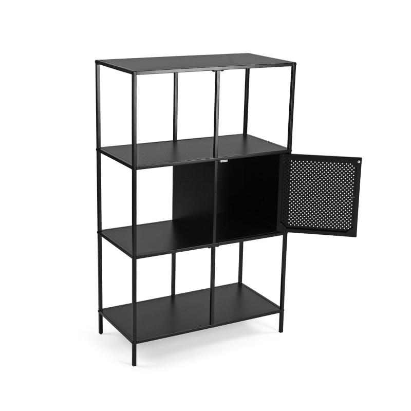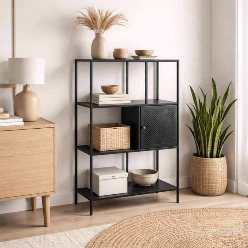 Étagère noire 4 niveaux avec casier